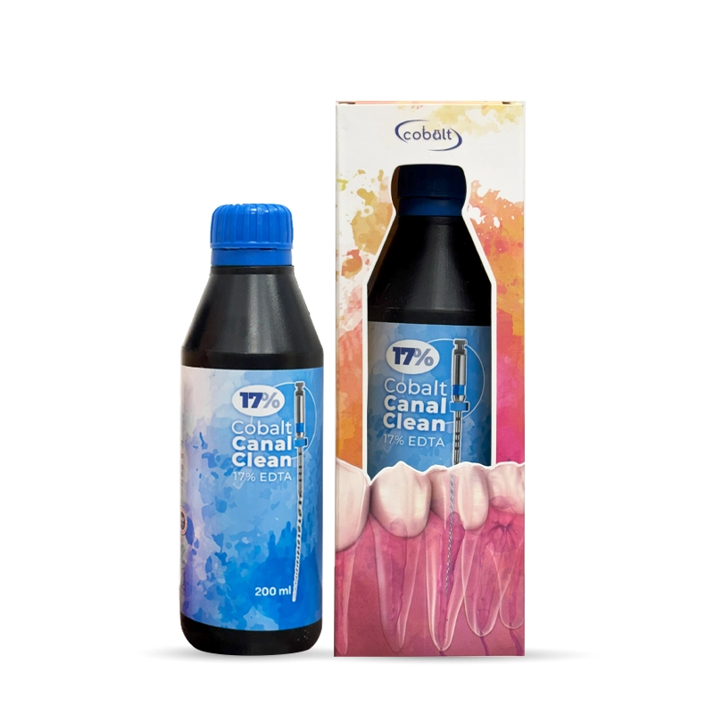 يساعد محلول EDTAلكوبالت بسبب ميزة chelation المتواجدة في هذا المنتج تساعدعلى التنظيف الميكانيكي لقناة الجذر عن طريق إزالة يونات الكالسيوم والمغنيسيوم .انخفاض الرقم الهيدروجيني pHمقارنة بالمنتجات المماثلة يجعل المنتج يعمل بشكل أفضل في إزالة الكالسيوم من جدار العاج.